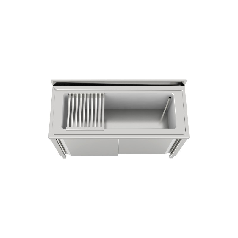 Spüle aus Edelstahl Aisi 304 2 Schiebetüren Schrank Ecoline Wannen rechten Abtropffläche 2000 x 700 X 850/900 h