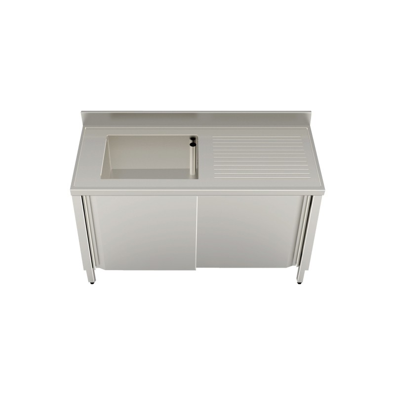 Spüle aus Edelstahl Aisi 304 1 Schiebetüren Schrank Ecoline Wanne linken Abtropffläche 1400 x 700 X 850/900 h