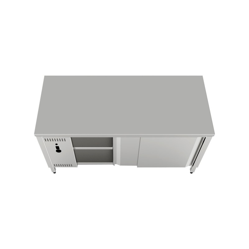 Table 304 aisi stainless steel cabinet with sliding doors with upstand with shelf 1600x700x850 h