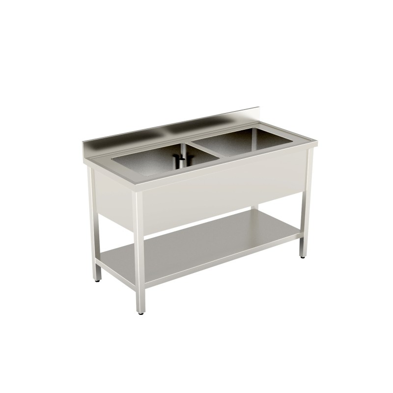 Sink in stainless steel aisi 304 on legs day ecoline with lower shelf 2 tubs 1200x700x850/900 h