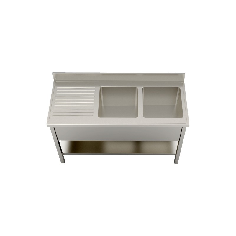 Sink in stainless steel aisi 304 on legs day ecoline with lower shelf 2 tubs left hand drainer 1600x700x850/900 h