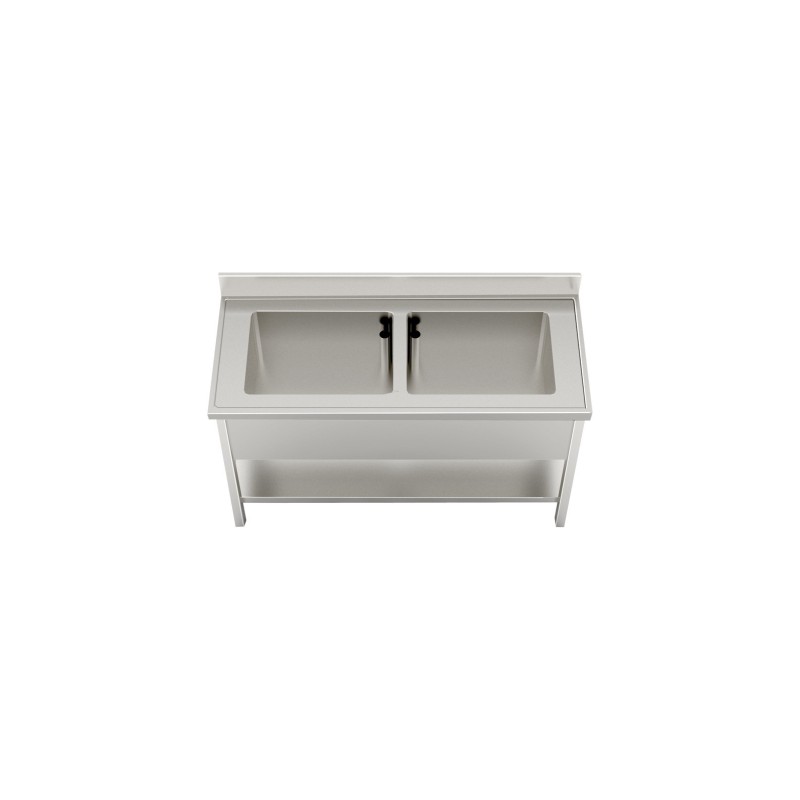 Évier en acier inoxydable aisi 304 sur jambes jour ecoline avec baignoires d’étagère 2 bas 1200 x 700 x 850/900 h