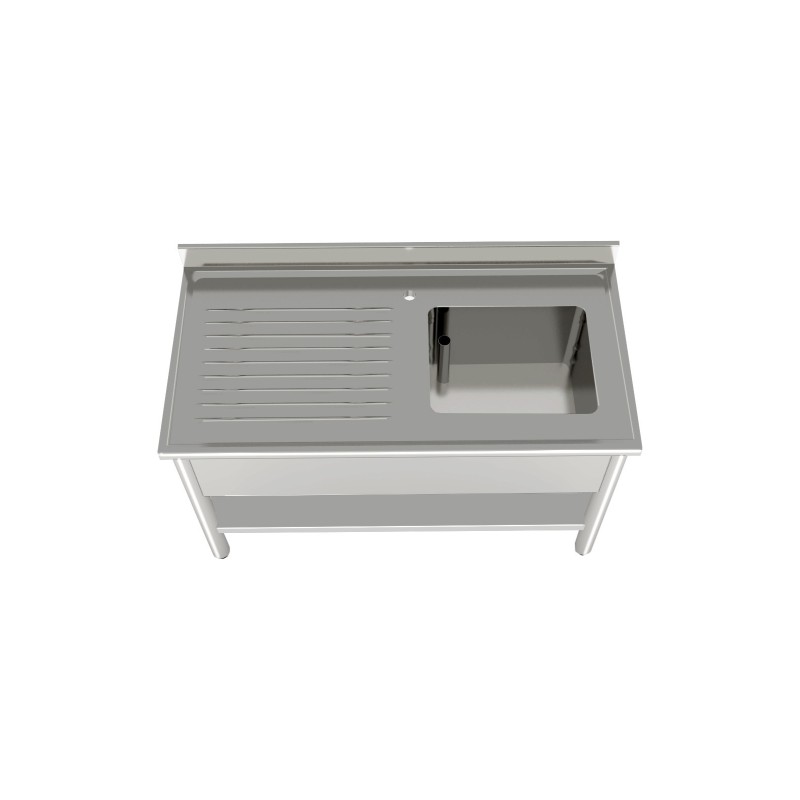Lavello a giorno con bordo raggiato foodline in acciaio inox aisi 304 con alzatina con ripiano inferiore 1 vasca gocciolatoio sinistro 1000x700x850/900 h