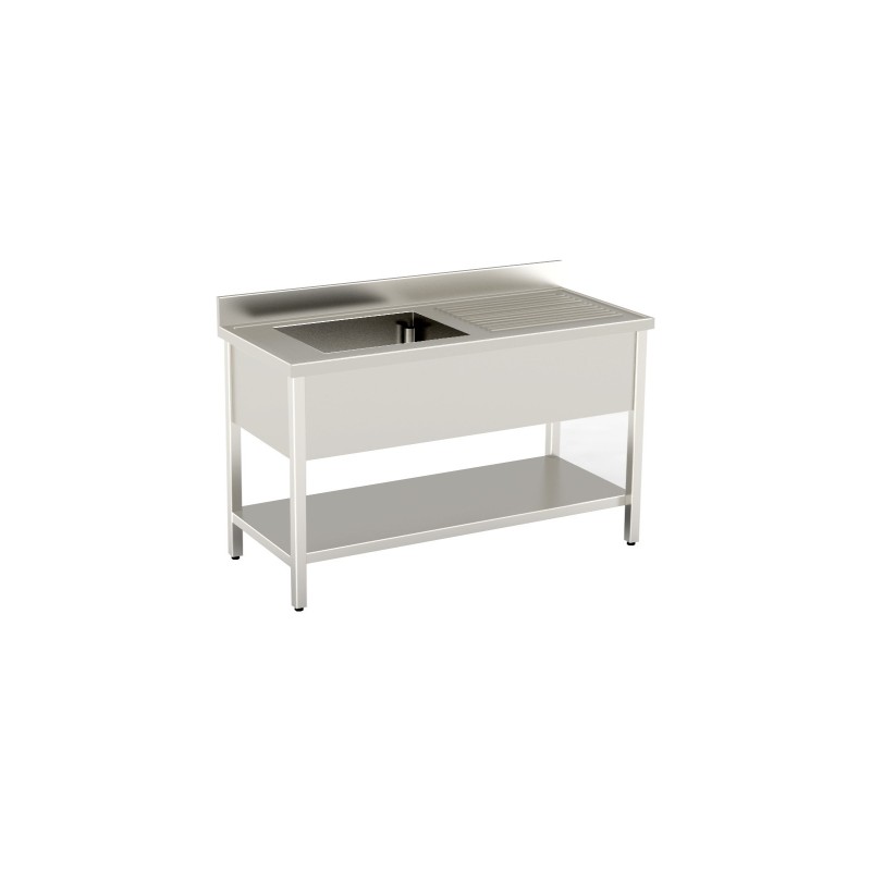 Lavello a giorno su gambe ecoline in acciaio inox aisi 304 con ripiano inferiore 1 vasca gocciolatoio destro 1200x700x850/900 h