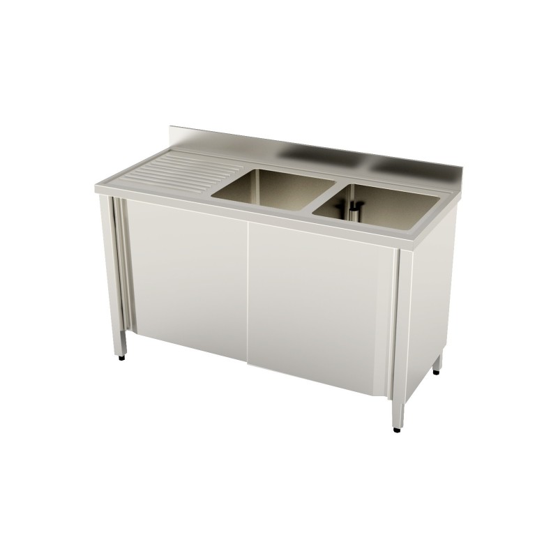 Lavello armadiato scorrevole ecoline in acciaio inox aisi 304 2 vasche gocciolatoio destro 1500x700x850/900 h