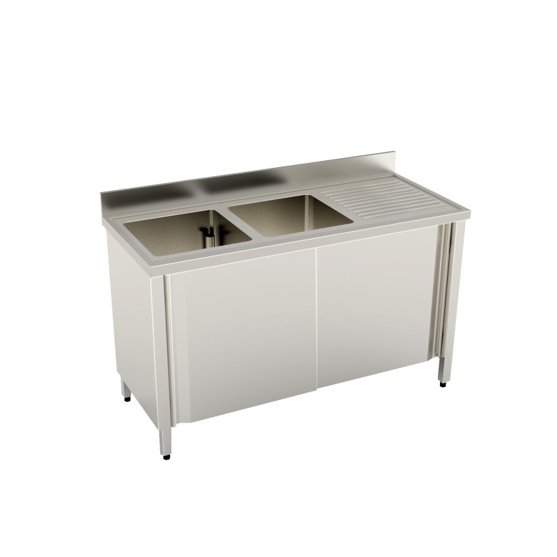 Lavello armadiato scorrevole ecoline in acciaio inox aisi 304 2 vasche gocciolatoio destro 1400x600x850/900 h