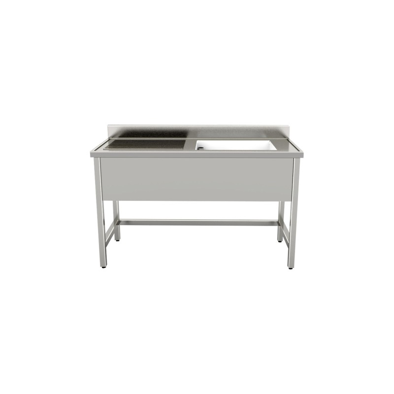 Lavello a giorno su gambe ecoline in acciaio inox aisi 304 1 vasca gocciolatoio sinistro 1400x700x850/900 h