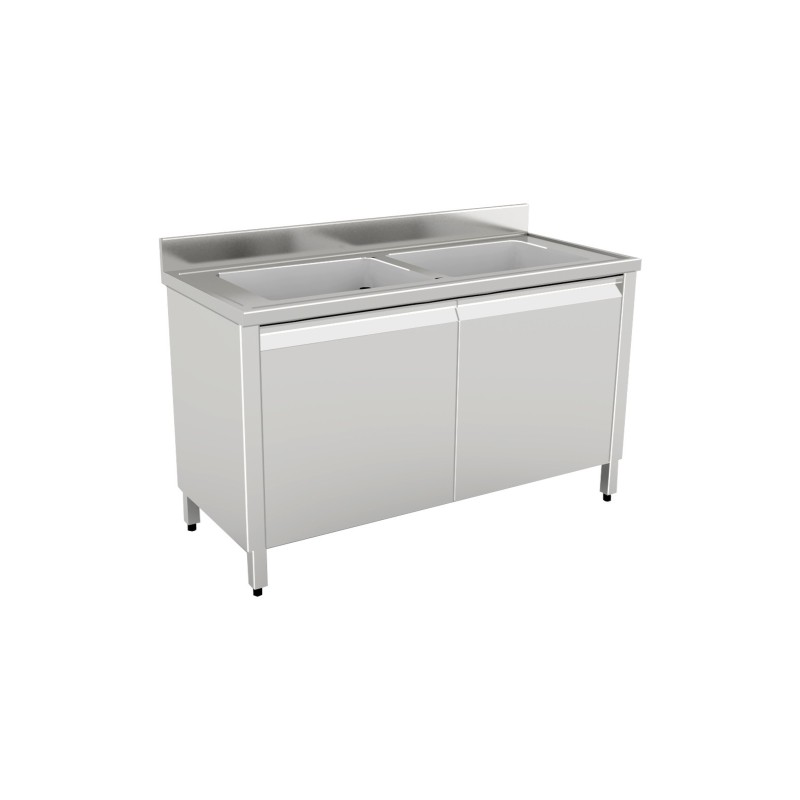 Lavello armadiato scorrevole ecoline in acciaio inox aisi 304 2 vasche gocciolatoio destro 1400x700x850/900 h