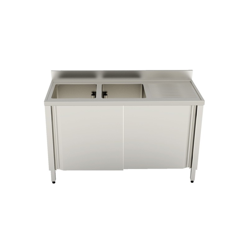 Lavello armadiato scorrevole ecoline in acciaio inox aisi 304 2 vasche gocciolatoio destro 1500x700x850/900 h